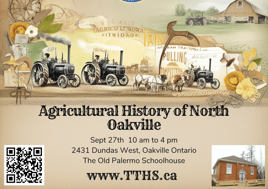 We showcased the “Agricultural History of Trafalgar Township & Region” on September 27, 2025 at the restored Heritage Palermo schoolhouse in Oakville (Dundas & Bronte Rd.). Our members were on-hand to provide visitors with a background on the rich history of Trafalgar Township, that encompasses the towns of Oakville, Milton and Bronte. Lots of FREE Parking.